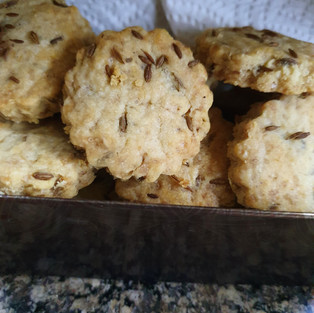 Line them on a greased baking tray and sprinkle some cumin seeds on top