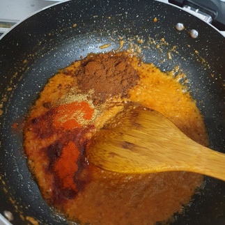 In a pan, heat oil, add the dry mixture and sauté for a couple of minutes