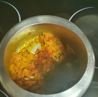 Add the tomato puree and saute till the raw smell of the tomatoes go away