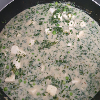 Add garam masala, frozen peas and milk and cook till well blendes (I added paneer cubes as well)