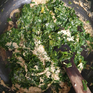 In a pan take 1 tbsp butter and saute the chopped methi leaves until it shrivels, keep aside