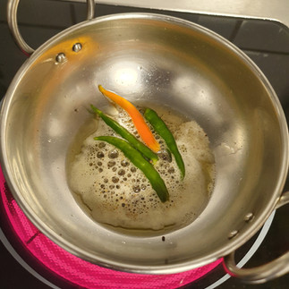 Add the tamarind pulp, hing, salt and boil till the raw smell goes away