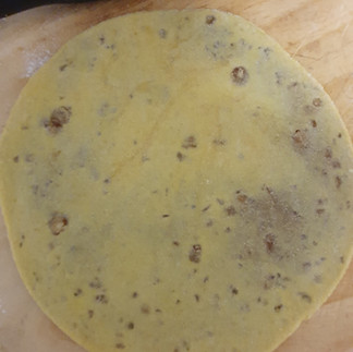 Smear this ball in the flour and roll it with a rolling pin gently to a paratha