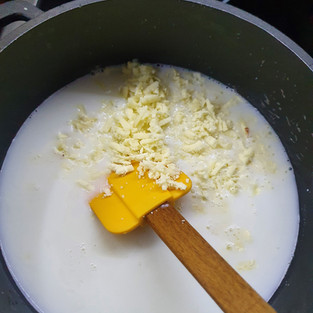 Once it is little warm, add the rest of the mawa and the cardamom powder, mix well