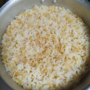 Dry roast the moong dal till light brown and cook it along with the rice in a cooker