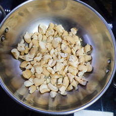 Fry the cashew nuts, grated coconut and kismis in 1 tbsp of ghee and garnish it