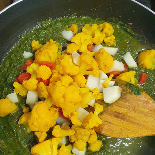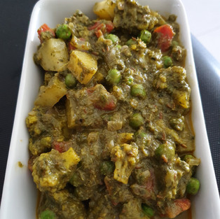 This medley is a wholesome gravy dish, had with paratha or rotis. This is healthy with the veggies tossed in a spinach gravy. Simple and not too heavy as I do not add cream in this recipe, even though the original recipe had cream.
