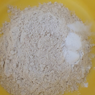 In a mixing bowl whisk wheat flour, baking powder, soda and salt