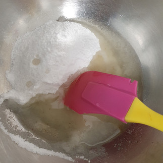 In another bowl, add the milk, sugar, oil, essence and cream it well